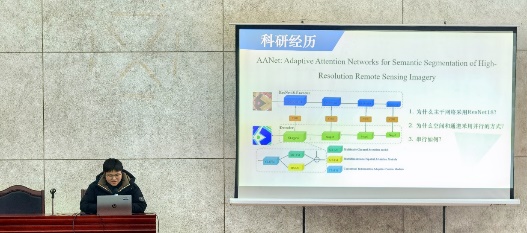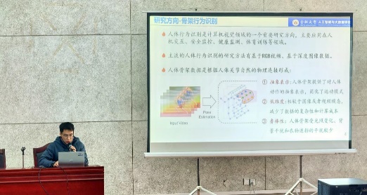 首先由陳鑫同學分享了基于深度學習的骨架行為識別技術報告,深入剖析深度學習算法在處理復雜骨架數據時展現的強大優勢,為該領域的研究實踐提供了新方向和有力支撐。“安徽省研究生創新創業之星”童安煬同學圍繞情感計算與行為識別技術,從理論知識儲備的夯實、課題研究的深入開展到科研節奏的精準把握,全方位地分享了自己的科研歷程與心得,為同學們打開了科研思路的新視野。李宇同學聚焦少樣本背景下跨語言意圖識別方法研究,詳細闡釋了其在多語言場景下利用少量樣本精準識別用戶意圖的重要價值,這對于打破語言壁壘、促進跨文化交流具有突破性意義,為語言技術的發展注入了新動力。李小凡同學則展示了融合前沿技術的 PM2.5 濃度長期預測方法,基于圖神經網絡開發出創新性的空間特征模型,并結合自身經歷,無私分享論文撰寫經驗,坦誠交流遇到的問題及解決方案,耐心解答同學們的提問,現場學術氛圍濃厚熱烈。朱善冰同學分享了基于特征提示Transformer的漸進匯聚水下圖形增強的報告,為該領域的研究與應用拓展了新的路徑和視野。針對同學們在專業學習與科研探索中的困惑,悉心解答、傾囊相授,為大家指明前行方向。張黔川同學分享了AANet: 用于高分辨率遙感圖像語義分割的自適應注意力網絡的文章,他深入剖析了 AANet 如何通過創新的自適應注意力機制,在復雜的遙感圖像數據中準確識別出不同的土地覆蓋類型、人造建筑設施以及自然地貌特征等,為遙感圖像的智能化分析與解譯提供了更為準確和高效的技術手段。