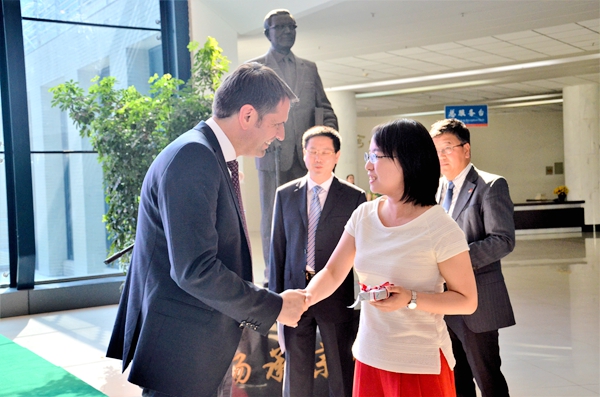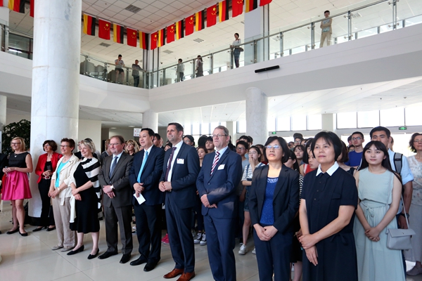 5月26日,德國下薩克森州經濟、就業與能源部部長奧拉夫·賴斯(Olaf Lies)率下薩克森州經濟代表團訪問我校,為中德合作“物流4.0”實驗室揭牌,并參加合肥學院與德國雅德大學結好二十五周年慶典。安徽省外事辦公室副主任張力芳、合肥市副市長吳春梅、安徽省教育廳外事處處長丁育紅應邀出席。