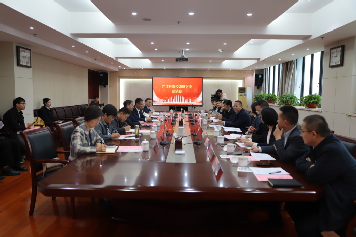 會前,廬江縣主要領導、重點企業代表與學校召開產學研合作座談會。雙方圍繞加強校地合作、科技成果轉化、人才交流等方面進行了深入交流。雙方一致認為,要進一步加強校地合作,完善頂層設計,構建產學研合作框架,發揮人才優勢、產業優勢、平臺優勢,推動創新鏈、產業鏈、資金鏈、人才鏈深度精準融合,實現校地雙方共同發展。