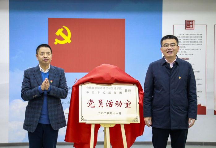 11月25日,合肥大學與中億豐控股集團交流座談會暨黨員活動室揭牌儀式在城市建設與交通學院舉辦,黨委副書記、校長任永會見中億豐控股集團董事長宮長義一行,黨政辦公室、城市建設與交通學院等相關單位負責人、教師代表參加活動。