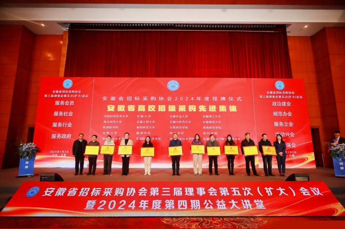 1月3日,安徽省招標采購協會高校采購專業委員會第六次會議暨2024年度安徽省高校采購論壇召開。合肥大學榮獲“2024年度安徽省高校招標采購先進集體”榮譽稱號,這是我校連續四年獲此榮譽。國資處袁園同志榮獲“安徽省高校招標采購先進個人”。