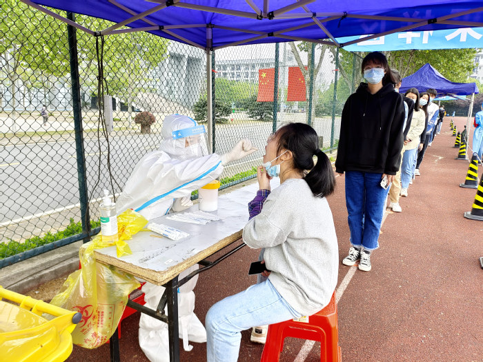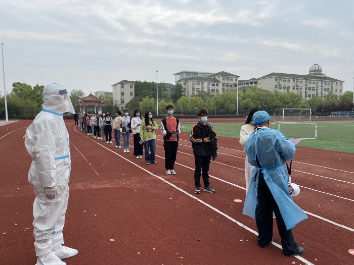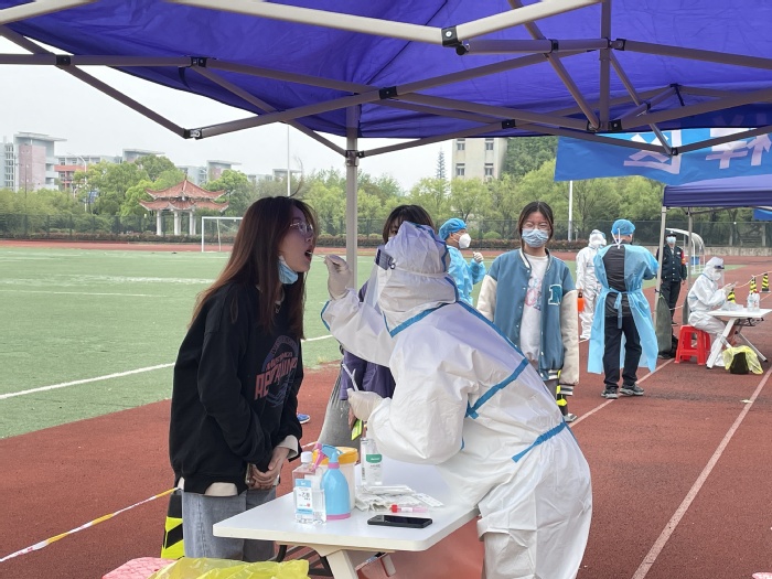 13點演練正式啟動。參加演練的學生佩戴口罩、間隔一米、測量體溫持健康碼行程碼登記信息有序進入核酸采樣檢測區進行咽拭子采樣隨即迅速從規定出口離開。樣本按照規范被逐一收集儲存,現場產生的醫療垃圾按照要求被及時處理。采樣結束后,工作人員對采樣入口到出口的通道進行消殺,并回收現場設備。期間,演練專項工作組成員巡查指導校園各采樣點核酸檢測工作,及時處置核酸檢測工作過程中的各類問題。