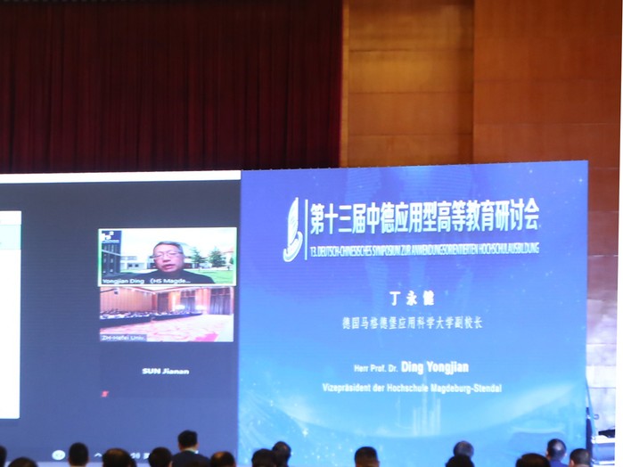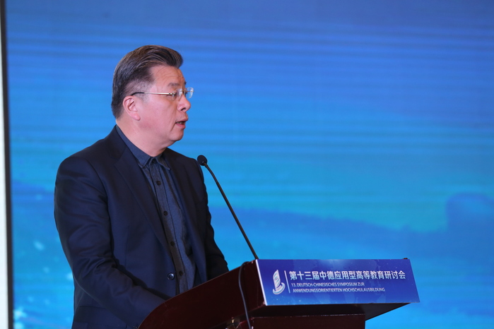 開幕式后,在大會主旨報告環節,五位專家結合自身研究領域分享了對應用型高等教育的思考。德國馬格德保應用科學大學副校長丁永健圍繞“新形勢下中德高校合作前景以及德國應用科學大學的角色”展開介紹。他表示,國際關系在很大程度上取決于經濟合作,中德雙方在經濟領域具有多方面、多領域的合作,這也為中德高校教育合作提供了堅實的基礎。在未來,中德高校間的合作交流會持續進行、不斷深化,共同推動中德教育的發展進步、合作共贏。