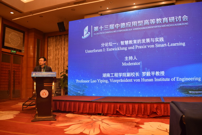 第一分論壇主題為智慧教育的發(fā)展與實(shí)踐,由湖南工程學(xué)院副校長(zhǎng)羅毅平教授擔(dān)任主持人。北京大學(xué)教授陳洪捷,薩克森職業(yè)學(xué)院校長(zhǎng)、德累斯頓學(xué)院院長(zhǎng)安德烈亞斯·漢塞爾教授,合肥學(xué)院副校長(zhǎng)陳秀,奧斯納布呂克應(yīng)用科學(xué)大學(xué)教授亨德里克·拉克勒進(jìn)行專題報(bào)告。