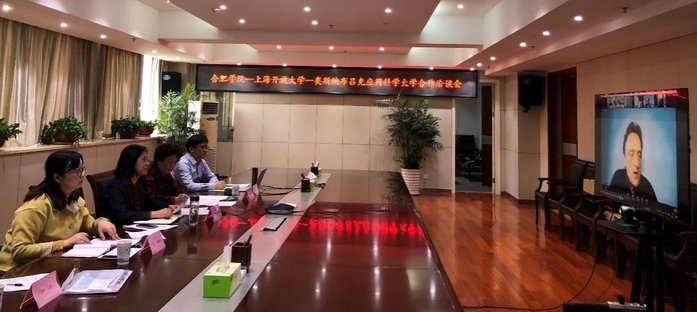 4月16日下午,合肥學院-上海開放大學-奧斯納布呂克應用科學大學三方合作洽談會于我校行政樓九樓西會議室召開。合肥學院校長吳春梅、上海開放大學校長袁雯、奧斯納布呂克應用科學大學校長Andreas Bertram參加了本次線上會議。