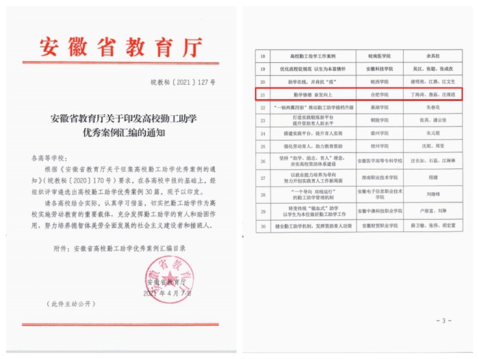 我校選送案例被安徽省教育廳遴選為高校勤工助學(xué)優(yōu)秀案例