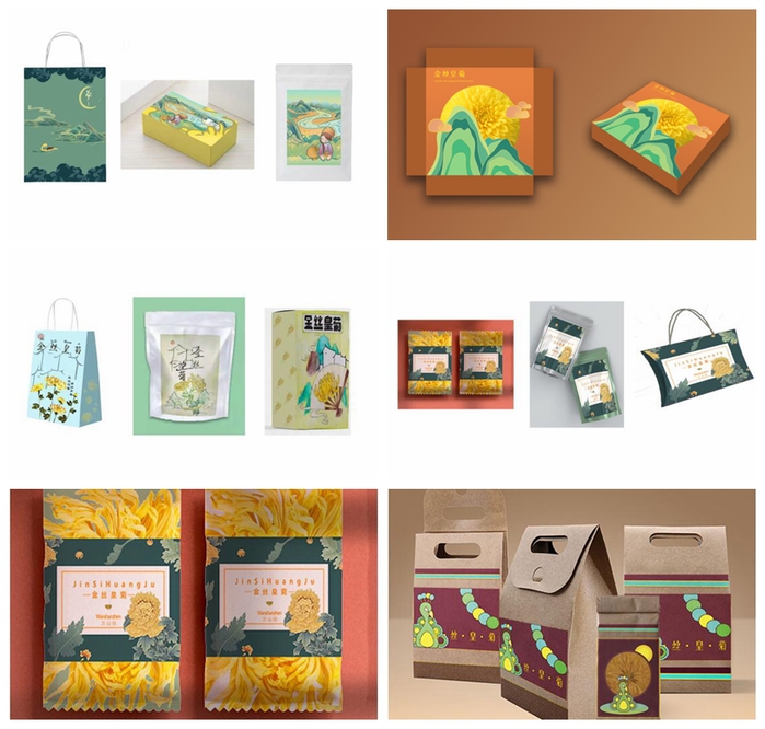 7月15日,經(jīng)過隊員們的共同努力,金絲皇菊的包裝設(shè)計任務基本完成。緊接著,隊員們又開始著手制作金絲皇菊的周邊文創(chuàng)。同學們分工合作,有人繪制文創(chuàng)視覺效果圖,有人制作包裝效果圖,也有人制作文創(chuàng)成品的PPT……眾人拾柴火焰高,在大家的共同努力下,文創(chuàng)產(chǎn)品的設(shè)計取得了明顯成效。