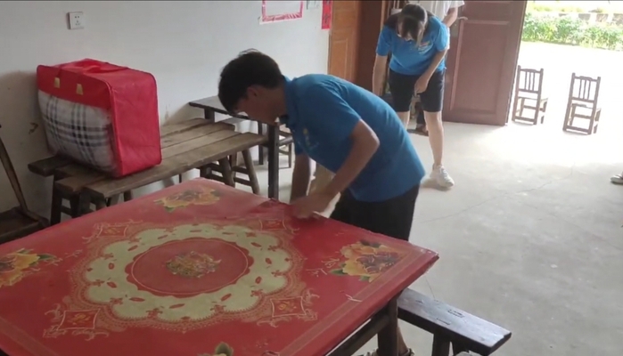 走入群眾家中,攜手共同勞動。隊員們走入當?shù)卮迕瘢绕涫枪鹿牙先说募抑校瑸樗麄儾链皯簟叩亍峒揖撸o他們帶來了溫暖。