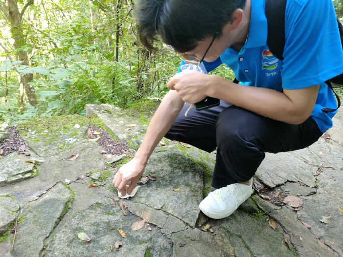 維護景區(qū)環(huán)境,爭做綠色護衛(wèi)。在大別山白馬尖景區(qū),隊員們沿途撿起丟棄的垃圾,并進行垃圾分類處理。