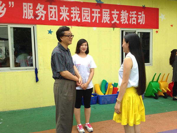 在徽州區(qū)黃發(fā)幼兒園,丁明與正在為幼兒園做裝飾的教育系志愿者進行了親切交談,與園長及志愿者代表舉行了座談會。在廬江縣石頭鎮(zhèn),丁明為小朋友們贈送了書本和文具用品,并詳細解了經濟系實踐活動的組織開展和隊員們的飲食起居情況,與志愿者和當地工作的我校畢業(yè)生進行了深入交流。他希望大家能全面了解當地的經濟、社會、文化,爭取建立志愿者長效服務機制。隨后,丁明與石頭鎮(zhèn)鎮(zhèn)委領導共同為合肥學院大學生實踐基地揭牌,并考察了當地重點企業(yè)萬磁公司。在肥西縣銘傳鄉(xiāng),他看望慰問了學生社團聯合會的暑期社會實踐活動團隊,聽取了活動開展情況匯報。他希望同學們勇于克服困難,砥礪品格、磨煉意志,把所學專業(yè)知識應用于實踐,相互團結,注意安全,圓滿完成實踐任務。在包河區(qū)大圩鎮(zhèn),丁明一行參觀了機械工程系支教學生開展的活動,仔細詢問了活動組織、食宿安排等情況,并就創(chuàng)新創(chuàng)業(yè)及志愿者服務工作的深入合作與大圩鎮(zhèn)相關部門進行了交流。