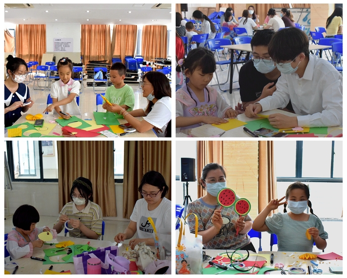 趣味折紙活動中,手工社社團成員對小朋友進行一對一輔導(dǎo),孩子們認真地學習每一個步驟,一遍遍地重復(fù)著手勢,妙手翻飛之間,一把把形態(tài)各異的紙扇映入眼簾。活動結(jié)束后,小朋友們紛紛與自己的手工作品合影留念。