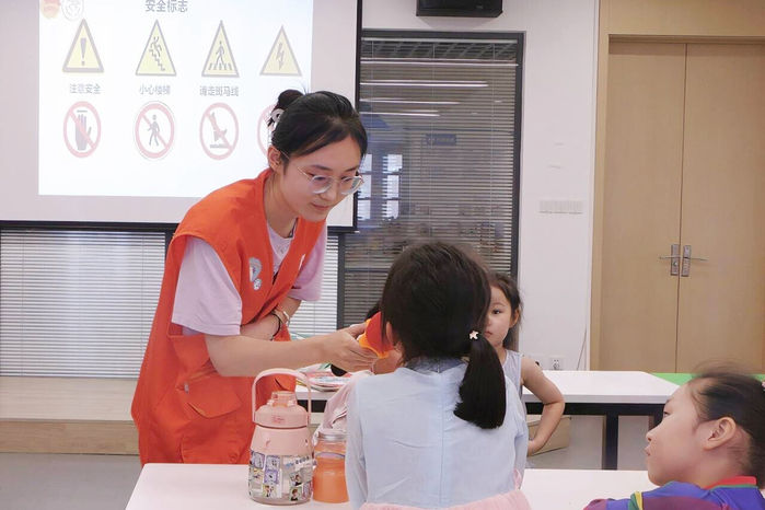 夏季是溺水高發期,為增強安全防范意識、提高緊急避險能力,志愿者開設了主題為消防安全、防震減災、溺水救援的安全教育課,通過案例分析、游戲互動、安全演練,使小朋友們認識了安全標志,了解了緊急逃生的技巧,樹立了高度的安全意識。“夏天天氣炎熱,可以去河邊洗澡嗎?”志愿者循循善誘,孩子們在一問一答中很快熟悉了夏日防溺“六不準”口訣。