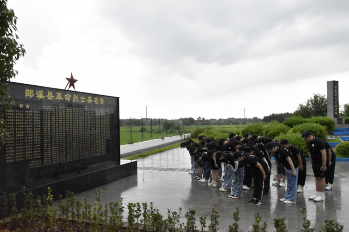 學習紅色精神,傳承紅色基因。調研團隊前往郎溪縣革命烈士墓園、姚村鎮夏橋村姚村蘇維埃舊址等紅色革命文化遺址開展“追尋紅色歷程,探索紅色記憶”主題團日活動。團隊成員在姚村蘇維埃政府舊址前重溫中國共青團入團誓詞,后進入舊址觀看姚村蘇維埃政府發展史視頻。其中部分團隊成員就鄉村黨建開展情況去往數個鄉鎮,對相關領導和負責人員進行采訪交流。隨后,先進制造工程學院院長胡學友、黨委副書記蔡靈美等學院領導與調研團隊一行前往烈士陵園,瞻仰革命先烈的英勇事跡,感悟革命前輩的無畏精神。
