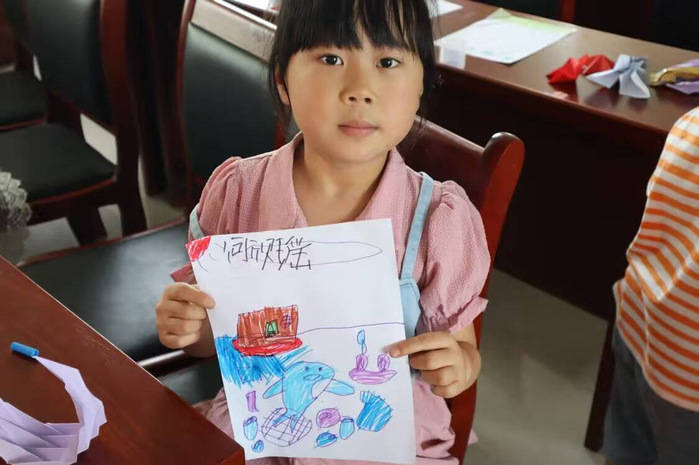 團(tuán)隊(duì)成員通過(guò)播放紀(jì)錄片,讓小朋友們感受到父母的辛勤付出和無(wú)私的愛(ài)。小朋友們用繪畫(huà)的形式表達(dá)對(duì)父母的感激,五彩斑斕的畫(huà)筆繪出了他們無(wú)限的感恩與愛(ài)。志愿團(tuán)還開(kāi)展了防溺水安全宣講,詳細(xì)講解了水上安全的重要性以及常見(jiàn)的溺水事故原因,幫助他們學(xué)習(xí)正確的自救技巧,現(xiàn)場(chǎng)還開(kāi)展了實(shí)踐演練,增強(qiáng)他們對(duì)自救技巧的全面認(rèn)識(shí)。“中國(guó)式現(xiàn)代化是人與自然和諧共生的現(xiàn)代化”。志愿團(tuán)通過(guò)播放《一條鯨魚(yú)的尾巴》保護(hù)環(huán)境宣傳片,對(duì)小朋友們進(jìn)行生態(tài)保護(hù)教育,讓他們深刻認(rèn)識(shí)到生態(tài)保護(hù)的重要性。