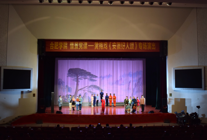 12月5日晚,“情景黨課”進基層——黃梅戲《安徽好人頌》專場演出于我校致用禮堂舉辦。安徽省教育廳思政處、安徽省黃梅戲劇院,校黨委宣傳統戰部、學生處、團委、馬克思主義學院等單位主要負責人及學院師生到場觀看。