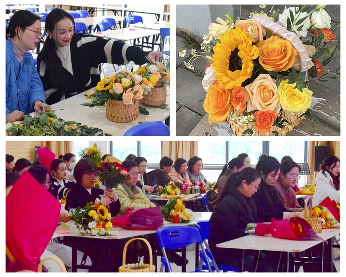 教職工活動室里,校工會主辦、經濟與管理學院分工會承辦的“魅力巾幗 花漾年華”主題插花活動正在如火如荼地舉行?;顒蝇F場,花藝師向大家介紹了鮮花的品種并詳細講解了插花的技巧與方法。教職工們充分發揮創造力,用靈巧的雙手完成了一束束插花作品,營造了濃厚的節日氛圍。
