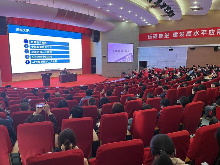 為扎實推進國家教育數(shù)字化戰(zhàn)略行動,促進信息技術與教育教學深度融合,3月26日下午,我校在學術報告廳舉辦教師專業(yè)素質(zhì)能力提升培訓會,邀請教育部在線教育研究中心“智慧教學之星”、省級線上教學名師岳國慶副教授主講,各二級學院教學院長、專業(yè)負責人和新進教師共200余人參加。