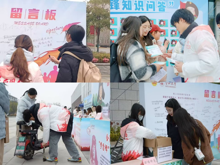 服務(wù)驛站映日輝,點(diǎn)亮春日校園美。校青年志愿者聯(lián)合會(huì)設(shè)置“追尋雷鋒足跡”服務(wù)驛站,志愿者們?yōu)閹熒峁┭坨R清洗、電腦維修、電瓶車打氣、手機(jī)貼膜、證件照拍攝、醫(yī)療護(hù)理、圖書捐贈(zèng)、科普環(huán)保等多項(xiàng)公益服務(wù)。為吸引更多青年學(xué)生參與活動(dòng),青志聯(lián)組織開展“雷鋒知識(shí)問答”盲盒競猜和“贈(zèng)人玫瑰,手留余香”留言活動(dòng)。活動(dòng)期間,驛站累計(jì)服務(wù)近千余人。