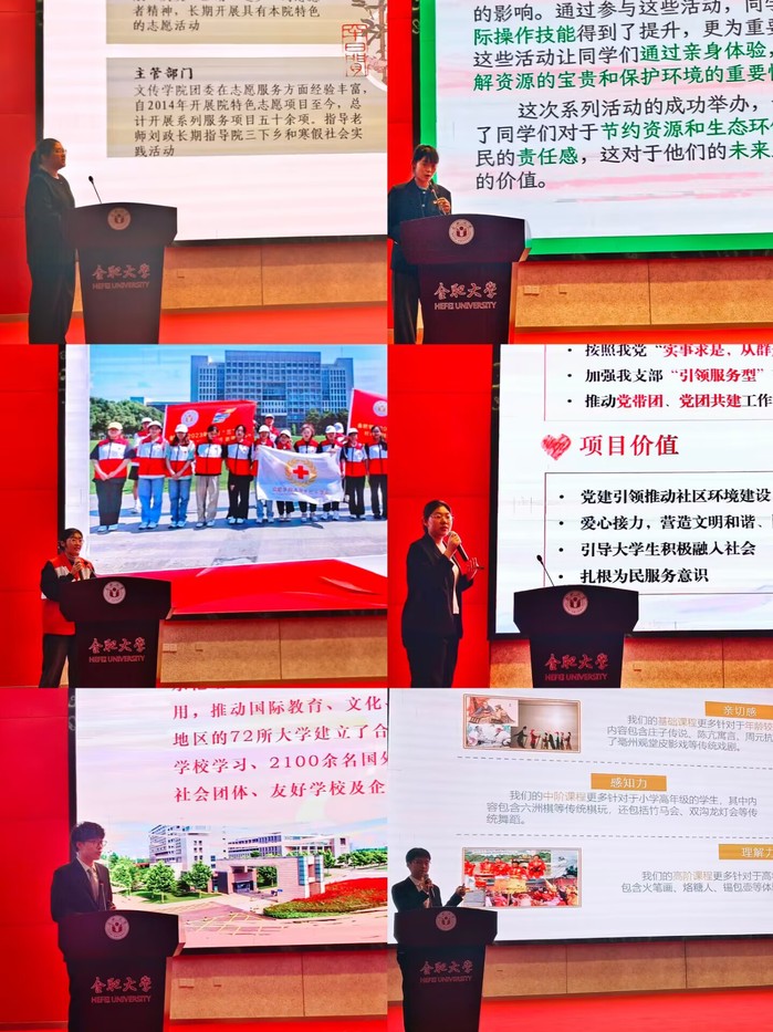 4月12日上午,合肥大學第一屆青年志愿服務項目大賽于圖書館報告廳A廳順利舉辦。活動特邀合肥工業大學馬克思主義學院周軍博士、安徽大學社會與政治學院徐剛老師、安徽省青年志愿者協會志愿匯安徽區域負責人盛鵬擔任評委,海恒社區團委書記謝燕燕出席。