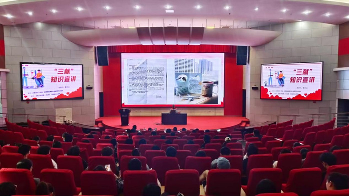 4月18日下午,合肥市紅十字會和安徽省血液中心、合肥市中心血站主辦的首場“三獻”知識專題講座在我校舉辦。馬克思主義學院退休教師姜從山作為主講人,向學生講述和分享“三獻”相關知識。合肥市紅十字會事業發展部副部長王雙全,合肥市中心血站無償獻血招募區域主管鄭東、張磊、褚媛,校關工委秘書長劉玉培,團委副書記李妍妍和300余名學生到場聆聽。