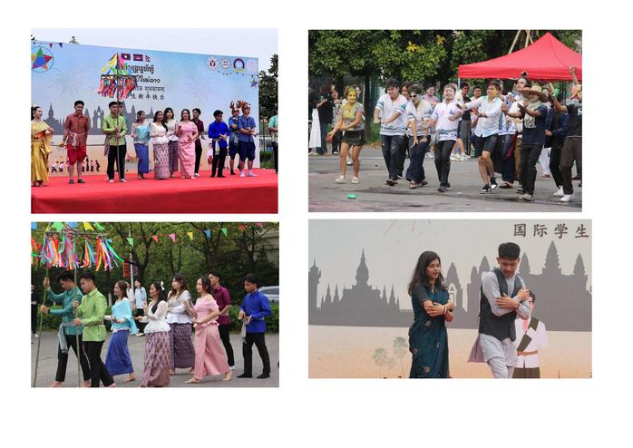下午,各國學生表演富有異域特色的歌舞節目,現場活動氣氛熱烈,學生們互相潑水,濺起的水花表達了對彼此的祝福和對來年的期望。中國學生在現場展示非物質文化遺產版畫,贏得了國際學生們的陣陣掌聲。