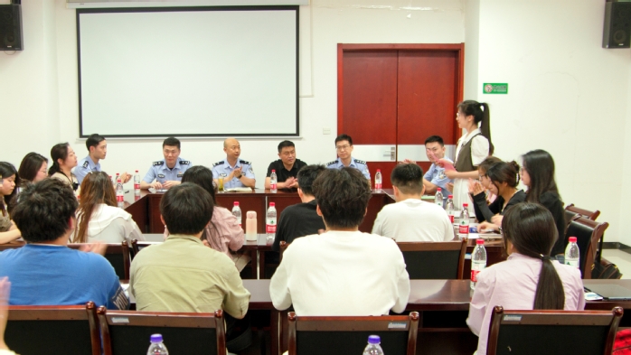 5月21日下午,我校在行政樓一樓會議室開展“護航校園 青春挺膺”網絡安全讀書交流會活動,特邀省公安廳網安總隊茍克愚副總隊長等8位公安干警為同學們作專題分享。校團委書記張應杰、副書記李妍妍和20余位學生干部參加活動。