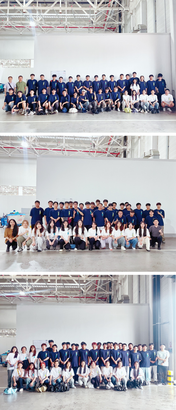 步入生產車間,學生們沉浸于秩序井然、技術碰撞的工業環境中。高度自動化的生產線與精益求精的工藝流程相互輝映,凸顯出大眾汽車在智能制造領域的卓越地位與不懈追求。機器人協同作業的精準高效,不僅提升了生產效率,更展現了工業4.0時代下智能制造和智能網聯風采。沖壓車間的巨大機械手臂轉動自如,焊接車間的激光焊點平滑細膩,涂裝車間的色彩魔法讓人目不暇接,總裝車間的精細裝配更是彰顯了大眾汽車人的工匠精神。在親歷生產現場的過程中,學生們深刻領悟到了科技創新與傳統制造工藝的完美融合,以及規模化生產背后所蘊含的精細化管理哲學。