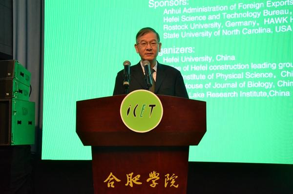 Herr Wang Qidong, Pr?sident der Universit?t Hefei, leitete die Er?ffnungszeremonie. Herr Prof. Dr. Cai Jingmin, Parteisekret?r der Universit?t Hefei, hielt die Er?ffnungsrede. Im Namen von den Studenten und Dozenten hie? er alle G?ste herzlich willkommen. Bei der Rede betonte er, dass die Universit?t Hefei seit langem gro?en Wert auf den Umweltschutz lege. Das Institut für das Umweltprojekt der Stadt Hefei, das Institut für den Chao-See und andere Plattformen seien errichtet worden. Das Motto ?grs Mottosse und grüne Berge sind unbezahlbare Sch?tze“ müsse stets aufgebaut und durchgeführt werden. Er erhoffe sich, dass alle Experten ihre Erfarungen und Techniken anwenden und weiterhin zum Umweltschutz Beitr?ge leisten würden.