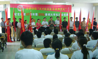 最后,院黨委副書記、院長趙良慶等領導為18支志愿服務團隊授旗,標志合肥學院2006年暑期社會實踐活動全面啟動