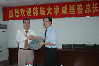 趙良慶院長在與咸基善總長會談時說,在上個月去韓瑞大學訪問時,對咸基善總長熱情周到的安排留下了美好印象,我院與韓瑞大學將于下學期聯合舉辦新農村建設課題研討會以及雙方即將開展“2+2”合作辦學項目,為開展好此次研討會和辦好“2+2”合作辦學項目,雙方需要進行溝通、交流和磋商。趙良慶院長指出,“2+2”合作辦學項目是我院與韓瑞大學合作的新起點,在安徽也是第一家,他建議雙方各指定一個項目經理,成立一個協調小組,負責具體事務的協商和處理,以保證此項目的順利實施。