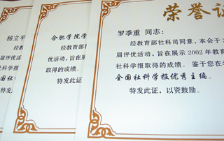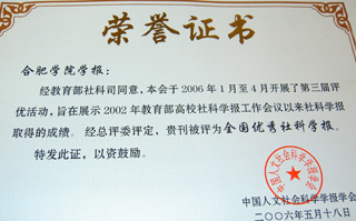 5月18日,從中國高教社科學報誕生百年紀念大會傳來佳音,經教育部社科司同意和中國人文社科學報學會總評委評定,合肥學院學報(社科版)被評為第三屆全國優秀社科學報,學報編輯部主任羅季重同志被評為全國社科學報優秀主編,楊立平同志被評為全國社科學報優秀編輯。這是我院學報又一次獲得全國優秀社科學報獎項,也是對我院學報近幾年工作的肯定。