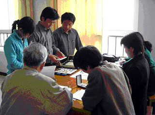 專家組組長錢源誠教授(中)和專家組老師討論評分細(xì)則