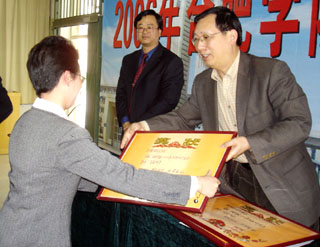 院領(lǐng)導(dǎo)向獲獎單位頒發(fā)獎狀