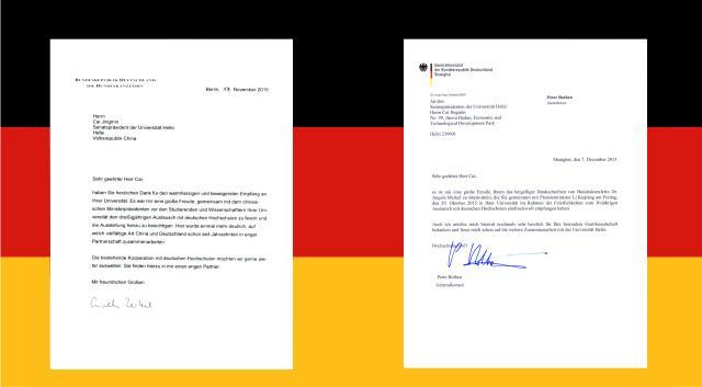127,德意志聯(lián)邦共和國駐上海總領(lǐng)事館總領(lǐng)事羅騰先生向我校蔡敬民書記轉(zhuǎn)呈了德國總理安格拉·默克爾的感謝信,并表示“期待能與合肥學院再次合作”。默克爾總理在感謝信中對我校在她訪問期間所作的精心安排和溫馨感人的接待表示衷心感謝,并表示:合肥學院與德國高校三十年的合作交流“又一次有力地表明了,幾十年來中國和德國以多姿多彩的方式進行了密切的伙伴合作”。“我們很愿意進一步擴大貴校與德國高校間現(xiàn)有的合作,在此方面,我樂意成為你們的密切合作伙伴”。