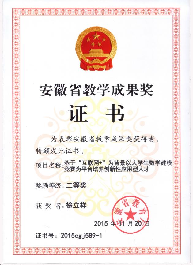 合肥學院大學生數學建模競賽,在徐立祥、李旭、江立輝、李寧等老師的指導下,在各屆參賽全體大學生的共同努力下,成績斐然,多次獲得國家級和國際級獎。人工智能與大數據學院徐立祥老師擔任我校大學生數學建模競賽負責人。