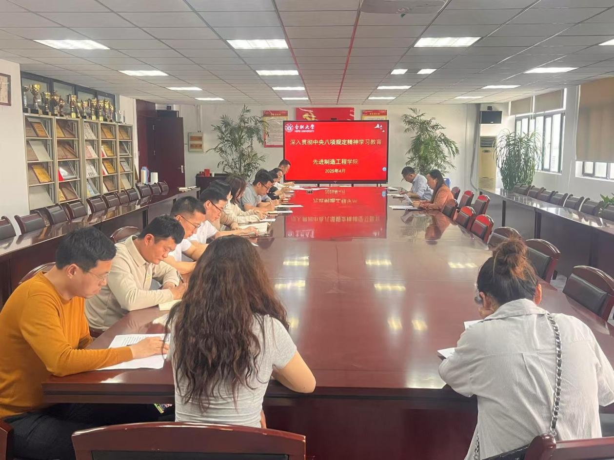 2025年4月15日,先進(jìn)制造工程學(xué)院組織召開(kāi)深入貫徹中央八項(xiàng)規(guī)定精神學(xué)習(xí)教育學(xué)習(xí)研討會(huì),學(xué)院黨委委員、各黨支部書(shū)記參與會(huì)議,會(huì)議由學(xué)院黨委書(shū)記杜娟主持。