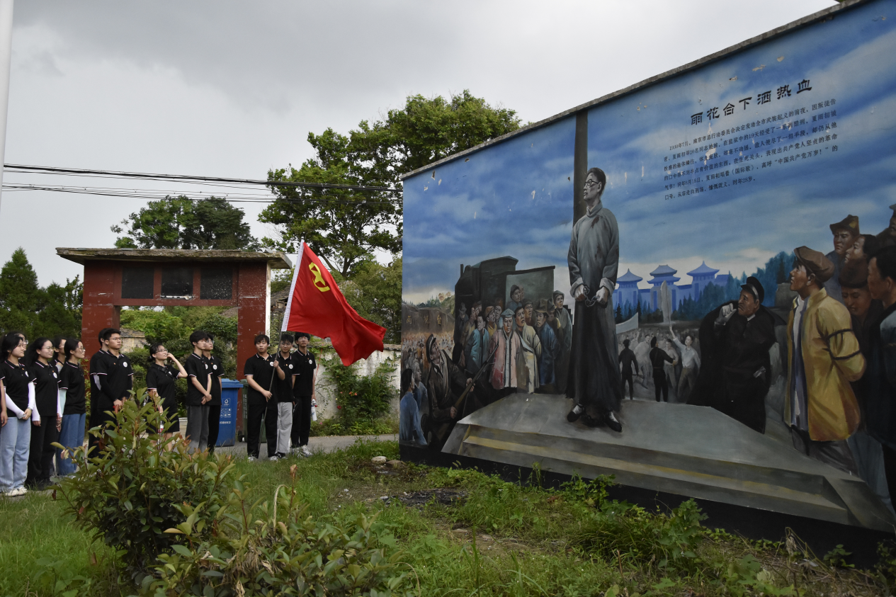歷時三個半小時的車程,先進制造工程學院調(diào)研團隊順利到達安徽省宣城市郎溪縣人才公寓在經(jīng)過簡單的休息調(diào)整之調(diào)研團隊乘車前往郎溪縣革命烈士墓園開展追尋紅色歷程,探索紅色記憶”活動。為磨煉團隊成員的意志力,鐘倫鎖老師帶領團隊成員步行前往革命烈士墓園,沿途眾多紅色主題壁畫,引得團隊成員駐足沉思。到達陵園之前,團隊偶遇暴雨,在農(nóng)戶家短暫避雨后,調(diào)研團隊抵達了烈士陵園。