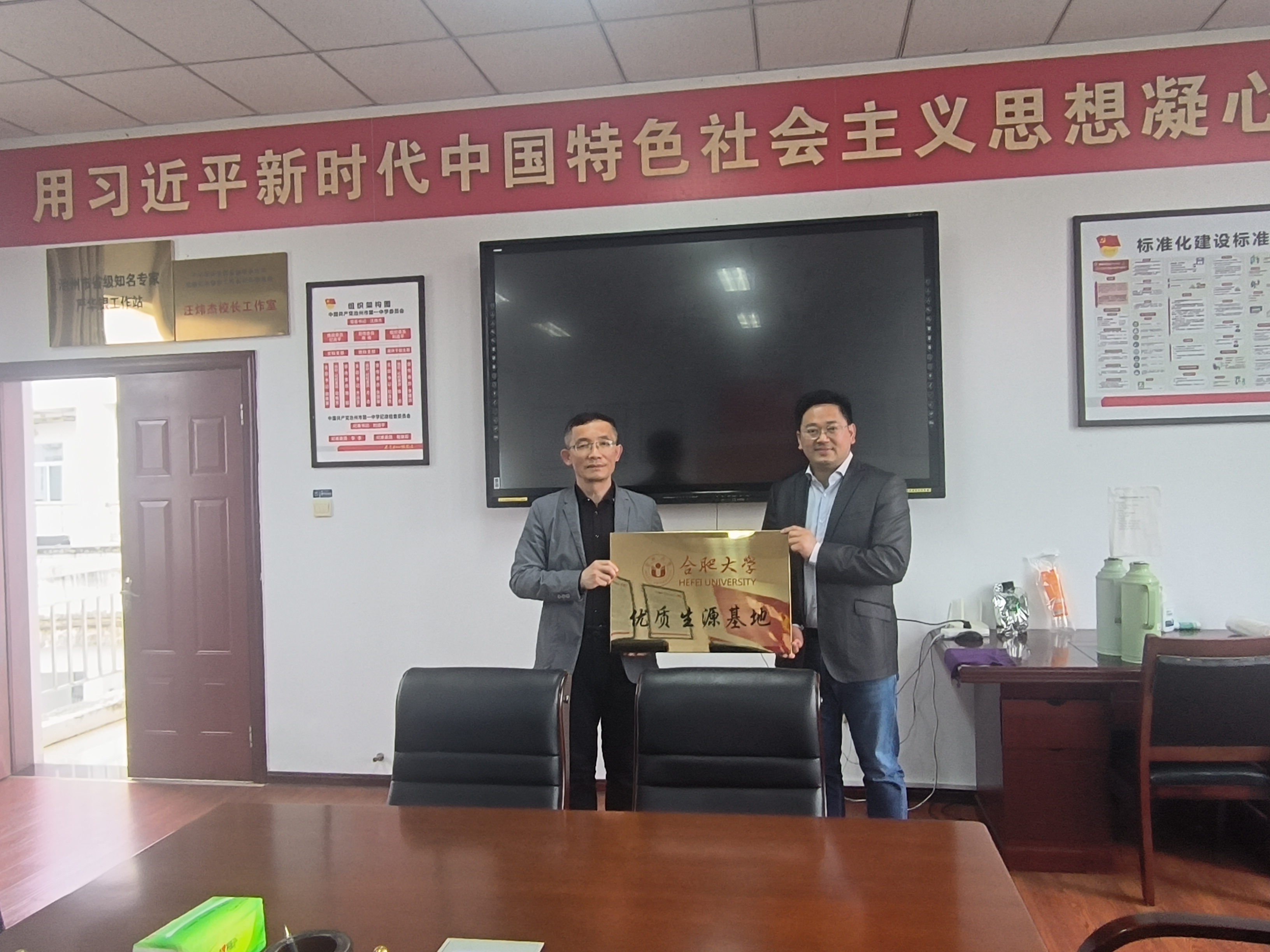 419日至20日,先進制造工程學院黨委書記杜娟、副院長胡國華、通信工程專業教師梅腱、先進院就業工作負責人張傲老師等一行人員抵達池州市,分別對合肥大學優質生源基地——池州第一中學和池州第八中學兩所學校進行了回訪。與校領導及高三年級骨干教師代表開展座談交流,簽訂合肥大學優質生源基地協議,舉行授牌儀式并贈送錦旗