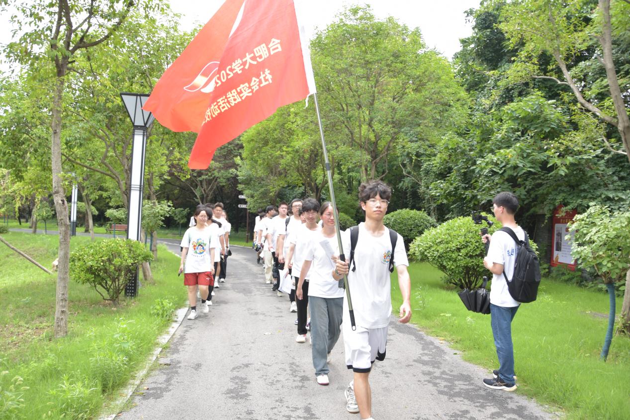 調研工作完畢后,團隊成員一同徒步前往泗縣烈士陵園。