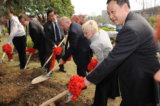 安徽省人大常委會(huì)副主任郭萬清和下薩克森州議會(huì)副議長(zhǎng)迪特爾?默曼共同為友誼樹揭牌