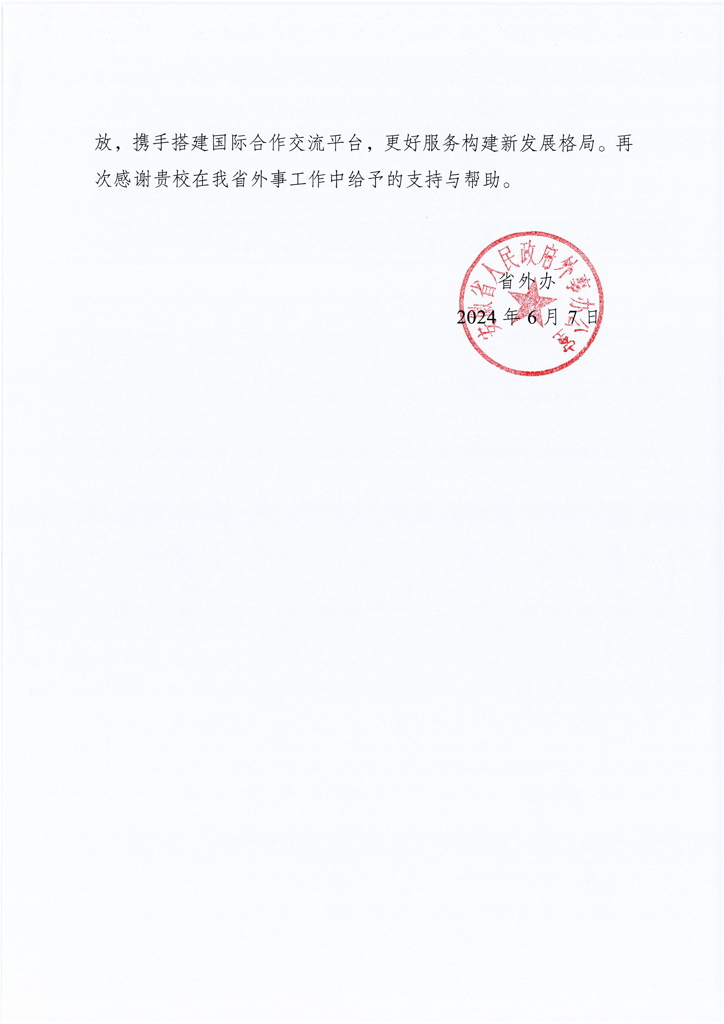 近日,安徽省人民政府外事辦公室向我校發來感謝信。