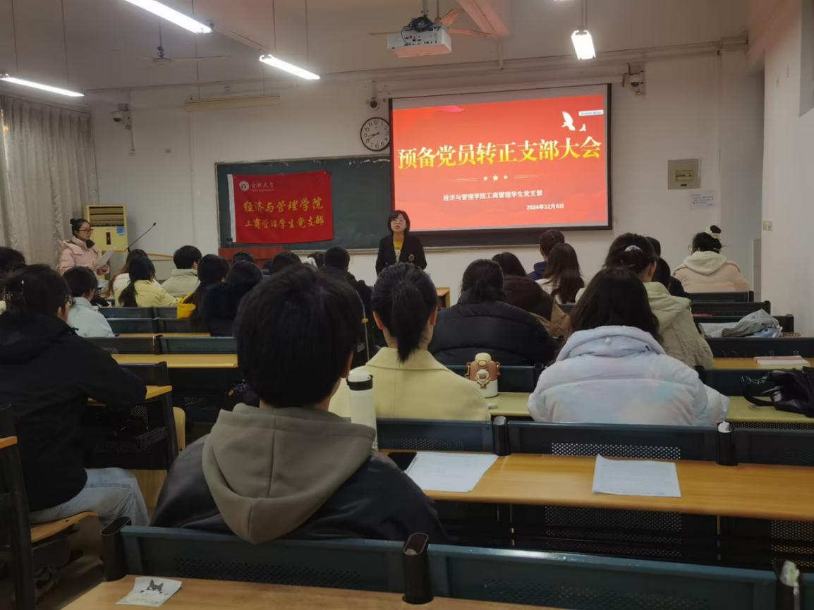 為進一步做好黨員隊伍建設,12月6日,工商管理學生黨支部在博學樓C座103教室召開預備黨員轉正支部大會。