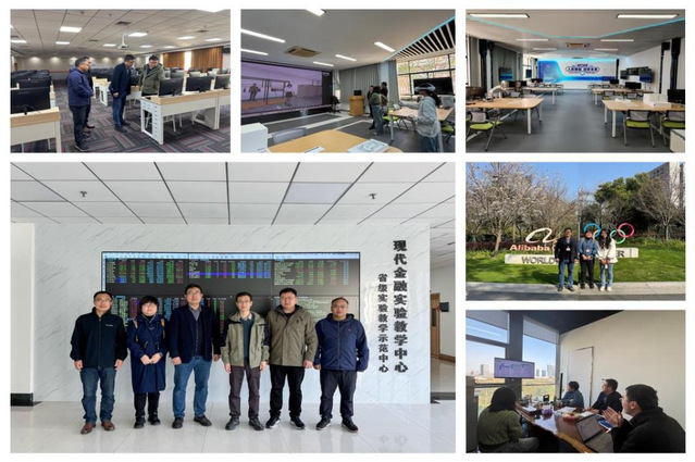 3月21日上午,調研組一行前往浙江財經大學現代金融實驗教學中心和ERP實驗中心開展調研,浙江財經大學資產與實驗室管理處副處長黃偉瀧、學科部主管羅松、高行春等陪同參觀,并就投資金融專業實驗室建設、實驗室資源優化機制、教學實踐與科研應用方面的現狀與發展趨勢等方面進行探討與交流。當天下午,調研組一行還前往浙江工業大學經濟學院和管理學院信息與實驗中心繼續開展調研,期間由實驗中心負責人張亮等陪同參觀了AI/VR智慧實驗室、人機智能與產業綠色創新實驗室等。在AI/VR實驗室內,老師們還體驗了VR眼鏡、VR智慧屏等各類實驗設備,雙方就VR實驗課程、虛擬仿真建設、教學科研結合等問題進行了熱烈而廣泛的交流。3月22日,調研組一行前往阿里巴巴(中心)濱江園區看望了2023屆經管學院優秀校友胡穎,傳達母校的關懷和問候。會談中就校友個人工作發展狀況及未來規劃、校友所在單位人才需求意向和崗位等內容進行了深入探討,雙方還初步約定利用探望母校之際通過求職就業座談會的形式針對求職經驗、職業規劃、招聘資源等信息跟學弟學妹進行分享和交流。