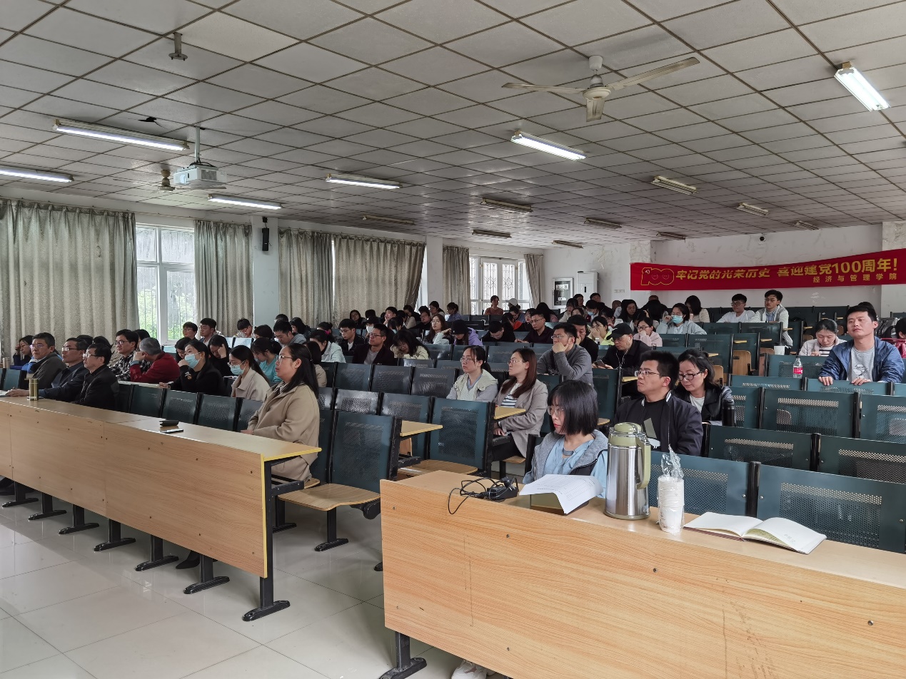在報告會開始前,經(jīng)濟(jì)與管理學(xué)院黨委書記楊學(xué)春首先帶領(lǐng)黨員同志學(xué)習(xí)了習(xí)近平總書記在清華大學(xué)考察時發(fā)表的重要講話,并強(qiáng)調(diào)要將黨史學(xué)習(xí)同人才培養(yǎng)、科學(xué)研究、服務(wù)地方、文化傳承、國際合作與交流以及大學(xué)生職業(yè)規(guī)劃相結(jié)合起來,期望全院師生凝心聚力,同心同德,從認(rèn)識上、行動上、成效上和落實上,深刻領(lǐng)會貫徹學(xué)習(xí)習(xí)近平總書記2月20日在黨史學(xué)習(xí)教育動員大會上的重要講話,為經(jīng)管學(xué)院從大院變成強(qiáng)院,為建設(shè)高水平應(yīng)用型大學(xué)再立新功。