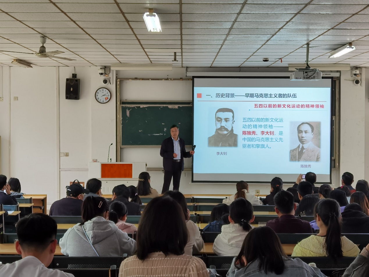 為慶賀中國共產(chǎn)黨百年誕辰,深入開展黨史學(xué)習(xí)教育,2021年4月27日,我院舉行黨史學(xué)習(xí)教育專題報告會,邀請馬克思主義學(xué)院姜從山教授作題為《中共一大及其代表的最終歸宿》的黨史專題報告。