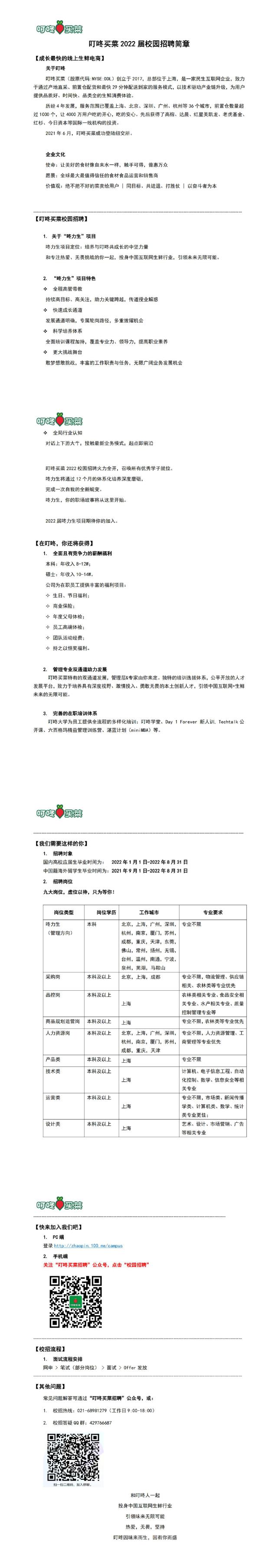 叮咚買菜2022屆校園招聘簡章