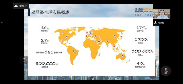 常煜鋒先生以“全球跨境電商增勢迅猛”、“中國跨境電商連續多年快速穩健增長”為切入點,指出全球疫情之下跨境電商如何引領新業態。接著,從“亞馬遜全球銷售”、“亞馬遜核心優勢”、“亞馬遜運營簡析”等方面進行了分析和講解,將亞馬遜與其他電商平臺進行類比,深刻剖析了亞馬遜成為全球最大跨境電商及最受消費群體歡迎平臺的深層原因。講座中,常總結合個人多年跨境創業經驗對學生的就業創業、職業生涯規劃等給出許多中肯建議,指出每個跨境人“內心都是孤勇者”,勉勵參會學生“要有夢想、要堅持”。