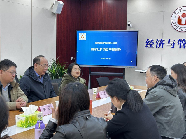 11月26日下午,經濟與管理學院于一期校園四棟二樓會議室舉辦南艷湖新文科經管大講堂暨2024年國家社科項目申報輔導會,華東師范大學郝宇青教授、東華大學任園教授、同濟大學李成教授應邀作報告,經濟與管理學院院長陳江華主持,學院中青年教師踴躍參加會議。