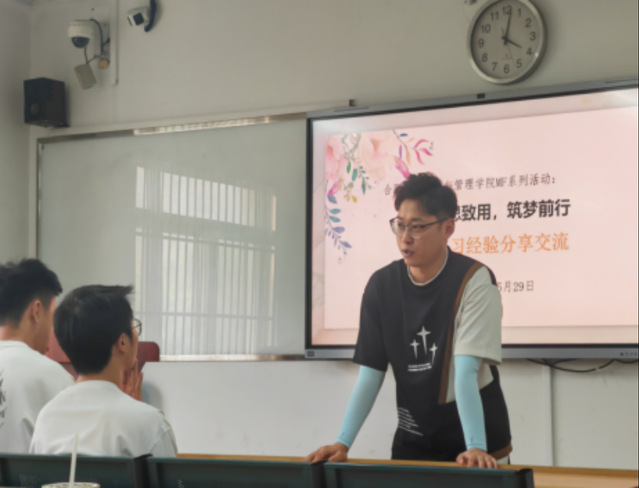 為幫助我院2023級金融專業(yè)碩士研究生更好規(guī)劃未來職業(yè)生涯積累實習(xí)經(jīng)驗,5月29日經(jīng)濟與管理學(xué)院金融專碩學(xué)位點南艷湖校區(qū)一期4棟304教室舉辦了主題“善思致用,筑夢前行”的實習(xí)經(jīng)驗分享交流會會議金融專碩學(xué)位點負責(zé)人代玉簪老師主持,23級金融專碩班主任婉寧老師出席會議,我院2021級碩士研究生李明陽丁超、衛(wèi)超瑞、袁超四位同學(xué)應(yīng)邀到場結(jié)合自己的求職實習(xí)經(jīng)歷進行經(jīng)驗分享23級全體金融專業(yè)碩士到場學(xué)習(xí)。