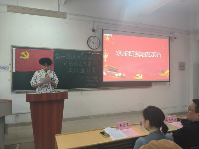 開(kāi)班典禮上,第十期入黨積極分子學(xué)生代表23級(jí)財(cái)務(wù)管理三班李琦同學(xué),分享了自己對(duì)中國(guó)共產(chǎn)黨的深刻認(rèn)識(shí)并承諾在黨課學(xué)習(xí)中嚴(yán)于律己、努力學(xué)習(xí)。隨后,支部書(shū)記陳維浩對(duì)本期培訓(xùn)班學(xué)員提出紀(jì)律要求,鼓勵(lì)學(xué)員認(rèn)真學(xué)習(xí)領(lǐng)會(huì)黨課知識(shí)內(nèi)涵,并在日常學(xué)習(xí)、生活等方面爭(zhēng)當(dāng)先鋒模范。最后,夏丹青副書(shū)記作動(dòng)員講話(huà),她希望同學(xué)們珍惜本次黨課學(xué)習(xí)機(jī)會(huì),端正入黨動(dòng)機(jī),樹(shù)立為共產(chǎn)主義事業(yè)奮斗終生的理想信念。